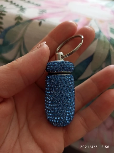 2Pc Rhinestone Medicine Pill Case Box Keychain