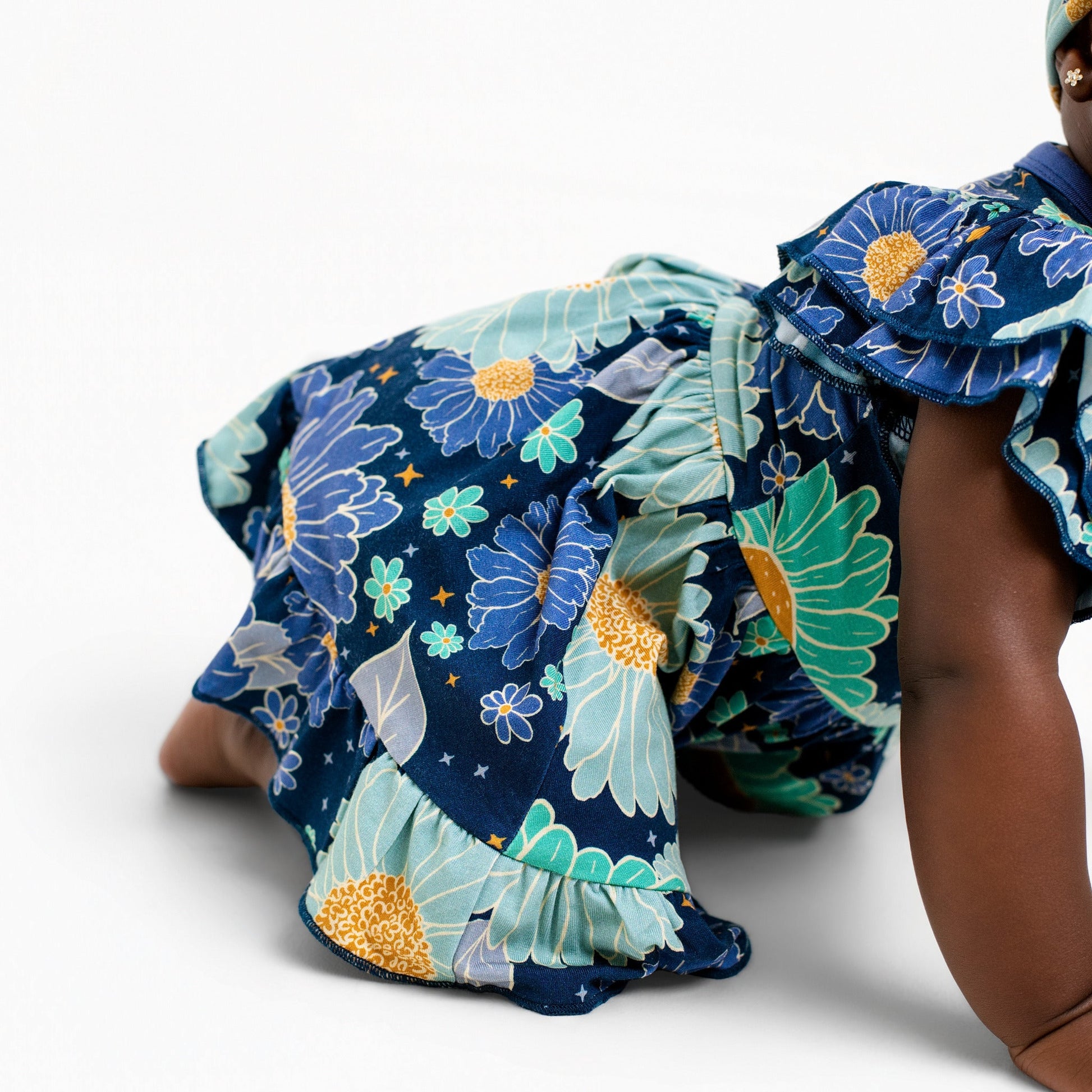 The built in bodysuit features secure bottom snaps for quick and easy diaper changes, while the full twirl skirt adds a playful, picture perfect flair. Soft, stretchy, and made to move, this one piece wonder is as functional as it is adorable.