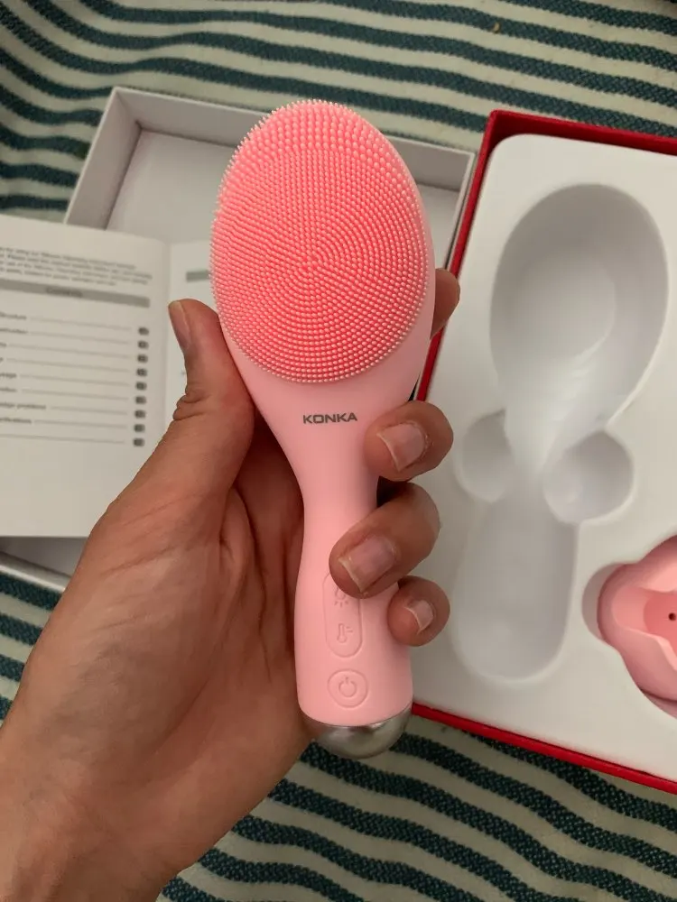 Just got it. Looks great. Working. I think I will be sattisfied how it cleans my face. It’s good size. Not to big, and not to small. Looks cute too.