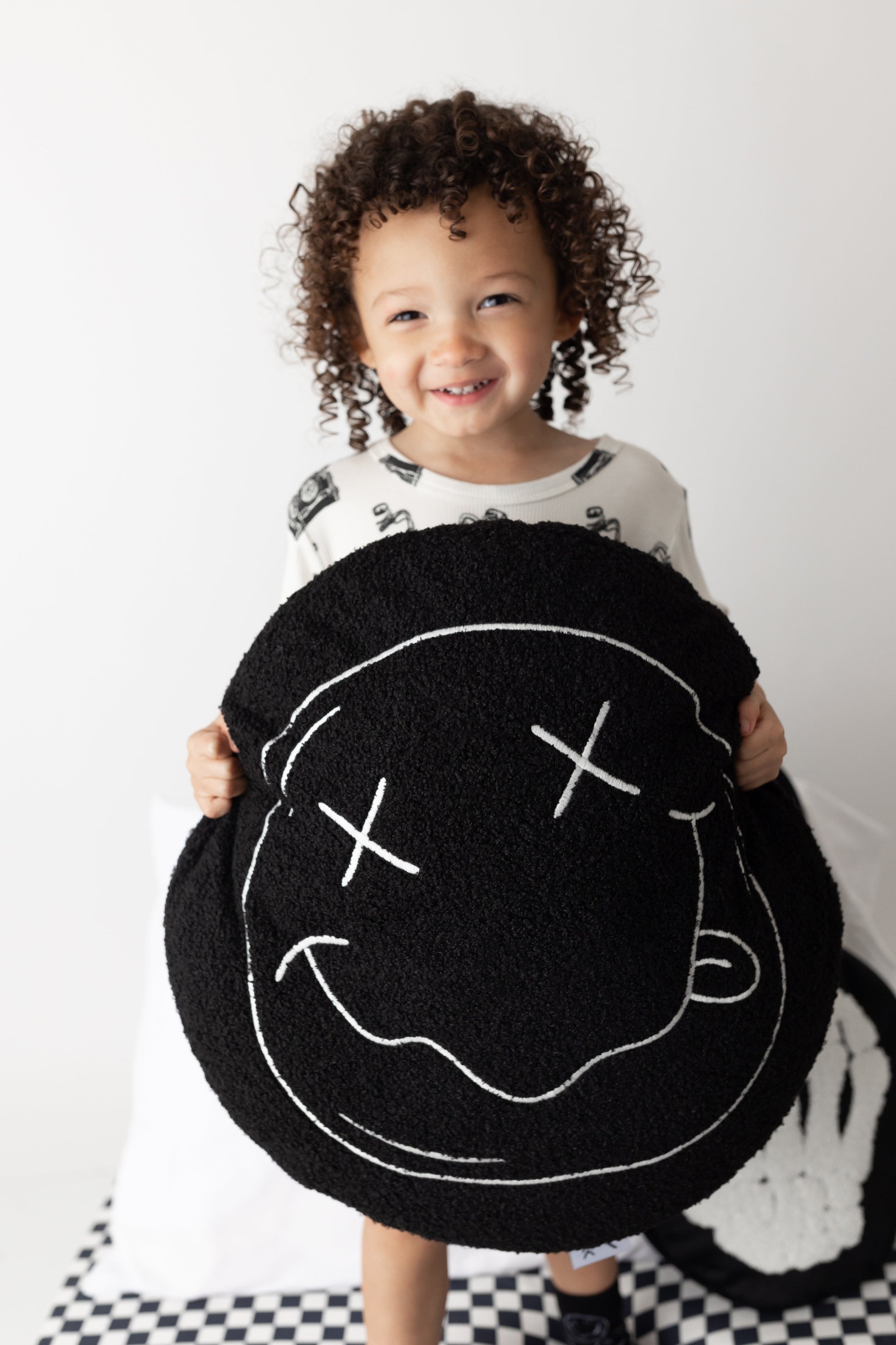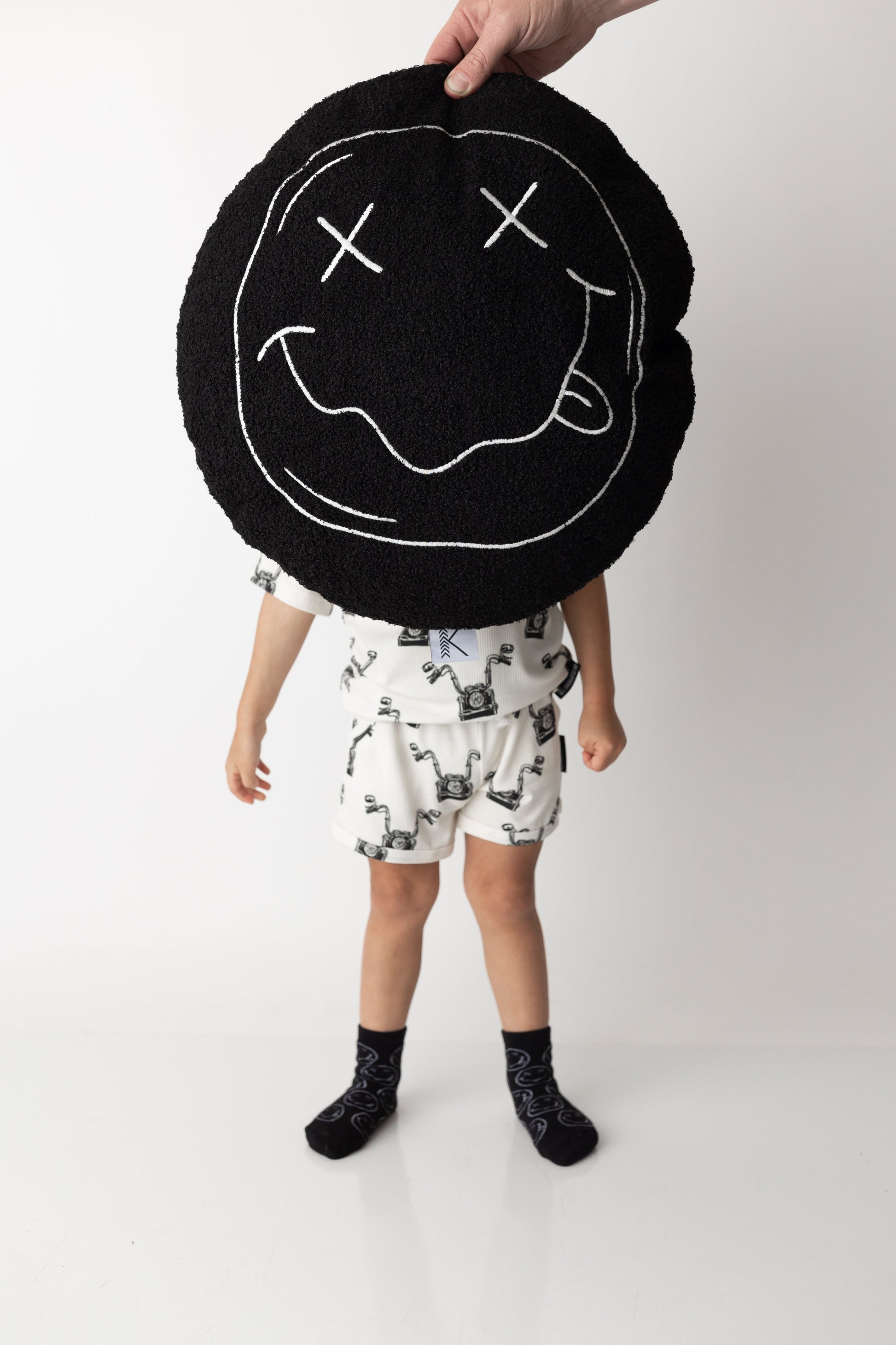 Calling all the cool kids to our cool smiley plush pillow! The perfect cuddle pillow for car rides or daycare. Stay hip, stay rad + stay cool even when sleeping.