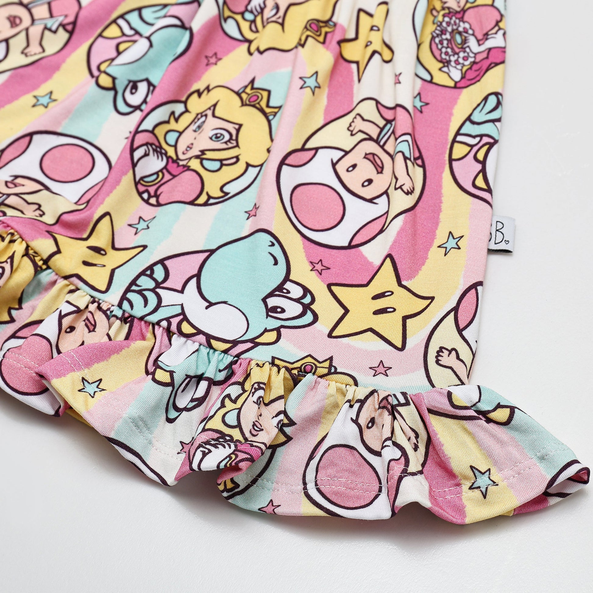 Short sleeve dress with ruffled trim.